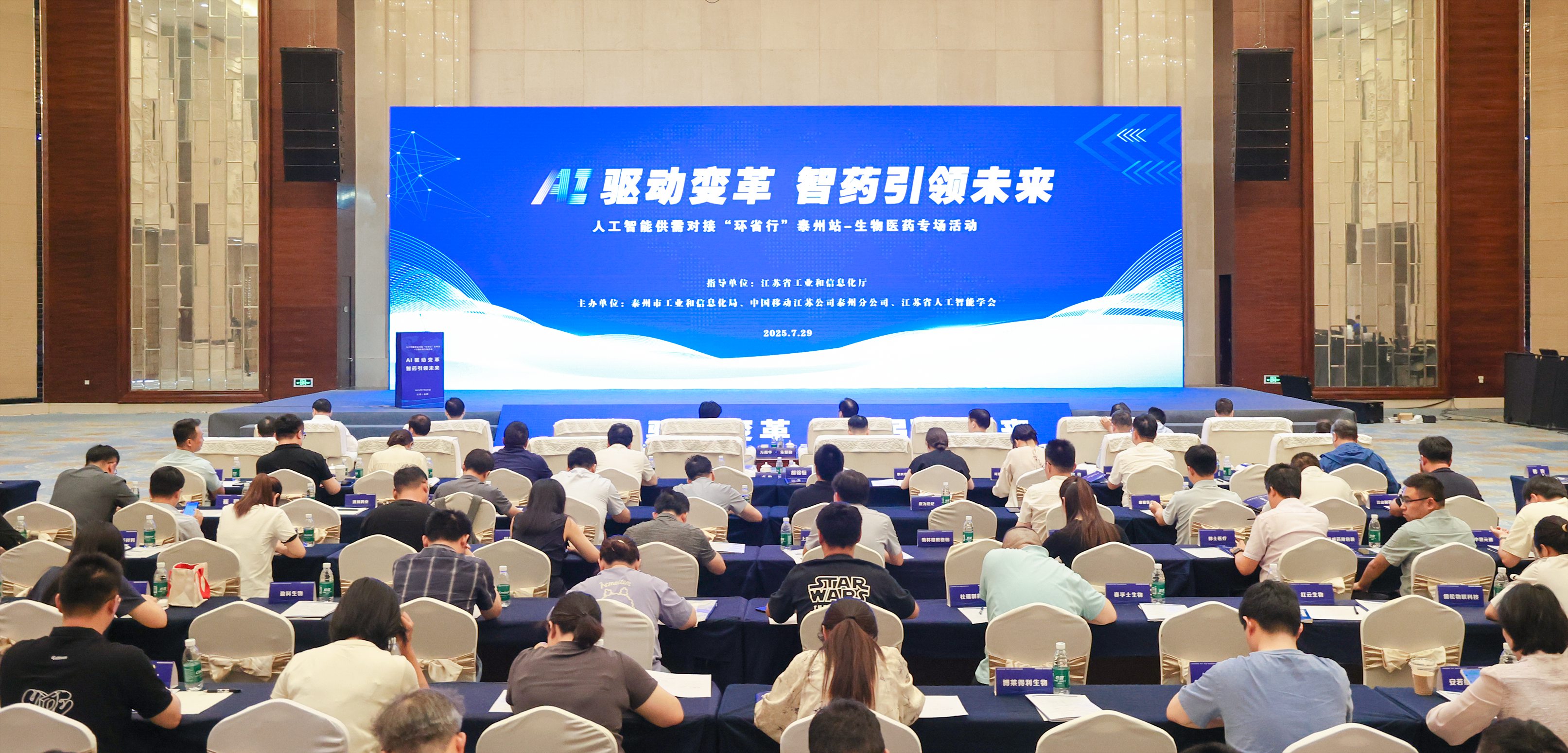 为加快促进人工智能等新一代信息技术与医药产业深度融合,推广人工智能在医药领域典型应用场景,2025年7月29日,由江苏省工业和信息化厅指导,泰州市工业和信息化局、中国移动江苏公司泰州分公司、江苏省人工智能学会主办,泰州医药高新区(高港区)工业和科技创新局协办的人工智能供需对接“环省行”泰州站(生物医药专场)活动在泰州市天德湖宾馆举行。省工业和信息化厅厅长朱爱勋、泰州市市长万闻华出席会议。