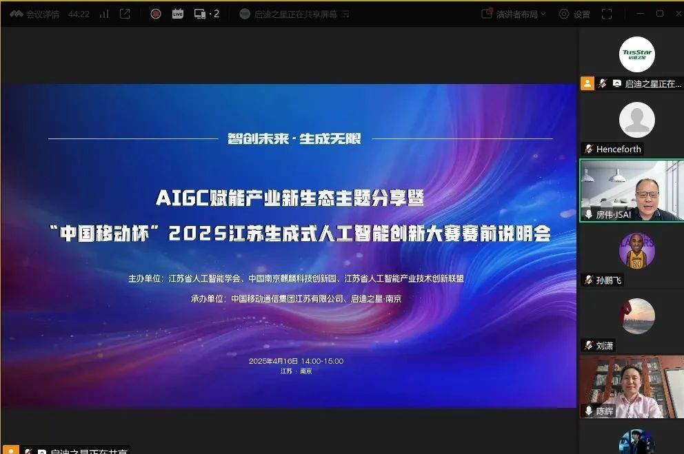 2025年7月9日,由省委网信办、省委金融办、省发展改革委、省教育厅、省科技厅、省工业和信息化厅、省数据局、省通管局、省科协等9家省级政府部门指导,省人工智能学会主办,中国移动通信集团江苏有限公司承办的“中国移动杯”2025江苏生成式人...