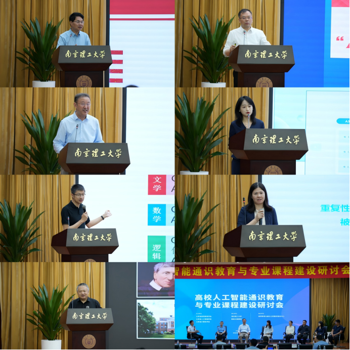下午,与会嘉宾围绕“如何重塑思维导向-学科适配-知行并举的AI通识课”议题展开报告与讨论。肖亮教授详细介绍了目前国际与国内人工智能通识课的建设经验,对南京理工大学人工智能通识课的建设展开构想。随后浙江大学杨洋教授做题为“大模型通识浅谈”的报告,结合浙江大学人工智能通识课建设实例,提供可参考的课程建设路径。湖南大学罗娟教授提出“智算共生”创新理念,以省级一流课程为例证,展示多元立体教学资源的建设,构建通识基础赋能新范式,为高质量人才培养奠定基础。南京大学王崇骏教授通过“AI+金融科技”跨学科教学案例,分析AI带来的多维挑战,思考自然科学技术与人文社科联合教学的可行性与必要性,探索课程思政的融入思路。