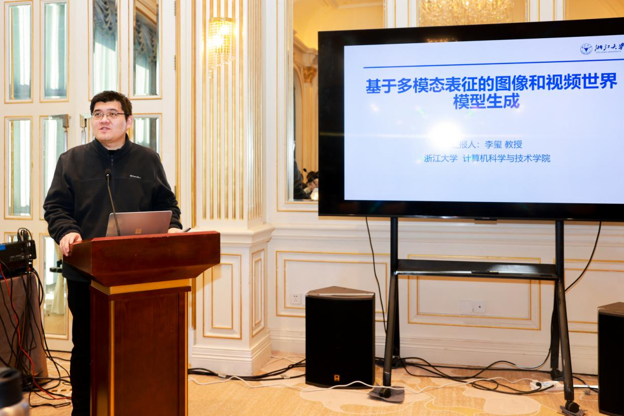 李玺教授以“基于多模态表征的图像和视频世界模型生成”为题,聚焦当前热门的生成式模型技术,系统梳理了从早期GAN模型到扩散模型、Flow模型、自回归模型的发展脉络,阐释了图像与视频生成中分布迁移、时空维度处理、算力适配等核心原理,详解了多模态融合、上下文学习、生成编辑一体化等关键技术。李教授重点介绍了其团队在ICCV的代表性研究成果——轨迹可控的图像视频生成技术,该技术通过解决训练数据尺度一致化、稀疏可控条件稠密化等问题,实现了给定单张图片和3D轨迹后,生成符合物理规律的动态视频,还创新引入预览交互机制,提升用户体验。报告中展示的多场景Demo令人瞩目,该技术可应用于手机端动态效果生成、影视转场、旅游宣传等领域,已与华为合作落地于Mate系列产品,获评华为全球最佳合作案例。李教授还与现场参会者就多视角输入优化、长视频噪声处理等问题深入互动,其报告兼具学术深度与实用价值,为相关领域的技术创新与落地提供了重要思路。