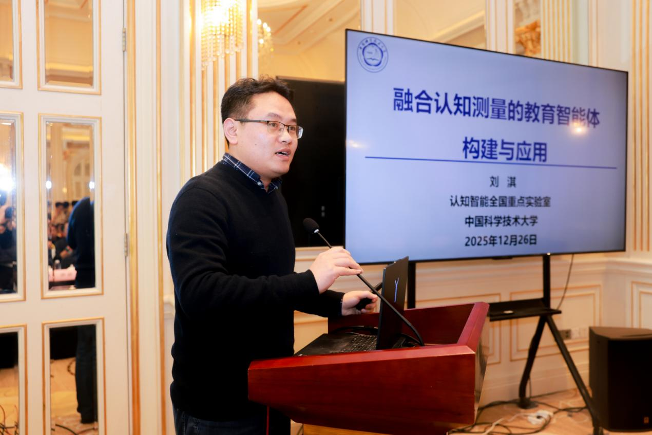 刘淇教授的报告以“融合认知测量的教育智能体构建与应用”为题,阐释了认知测量的交叉学科内涵,回顾其发展脉络,指出传统项目反应理论的局限性,介绍了团队提出的神经网络诊断框架及自适应测试的创新求解方案,提升了测量的精度与效率。在教育智能体构建上,他强调大模型与智能体的协同价值,详解了将认知测量工具与智能体融合的实践——通过相关模型量化学生能力、构建个性化画像并动态追踪认知状态,实现对不同特质师生行为的精准模拟。报告展示了课堂模拟智能体、智能编程问答平台等应用成果,提出采用苏格拉底教学法防范认知惰性,为智能教育的精准化、个性化发展提供了清晰路径,其技术与系统已展现产业落地价值。