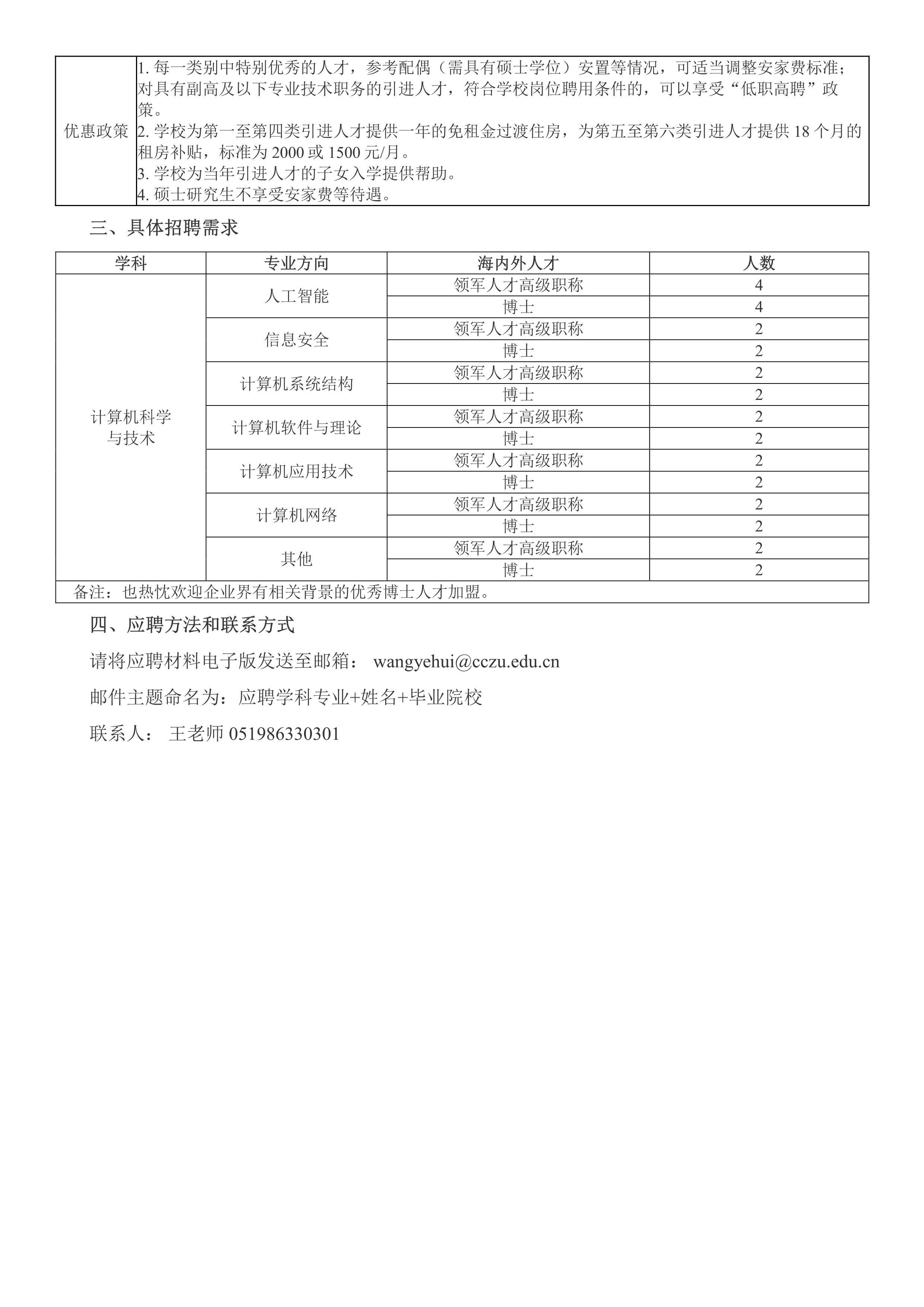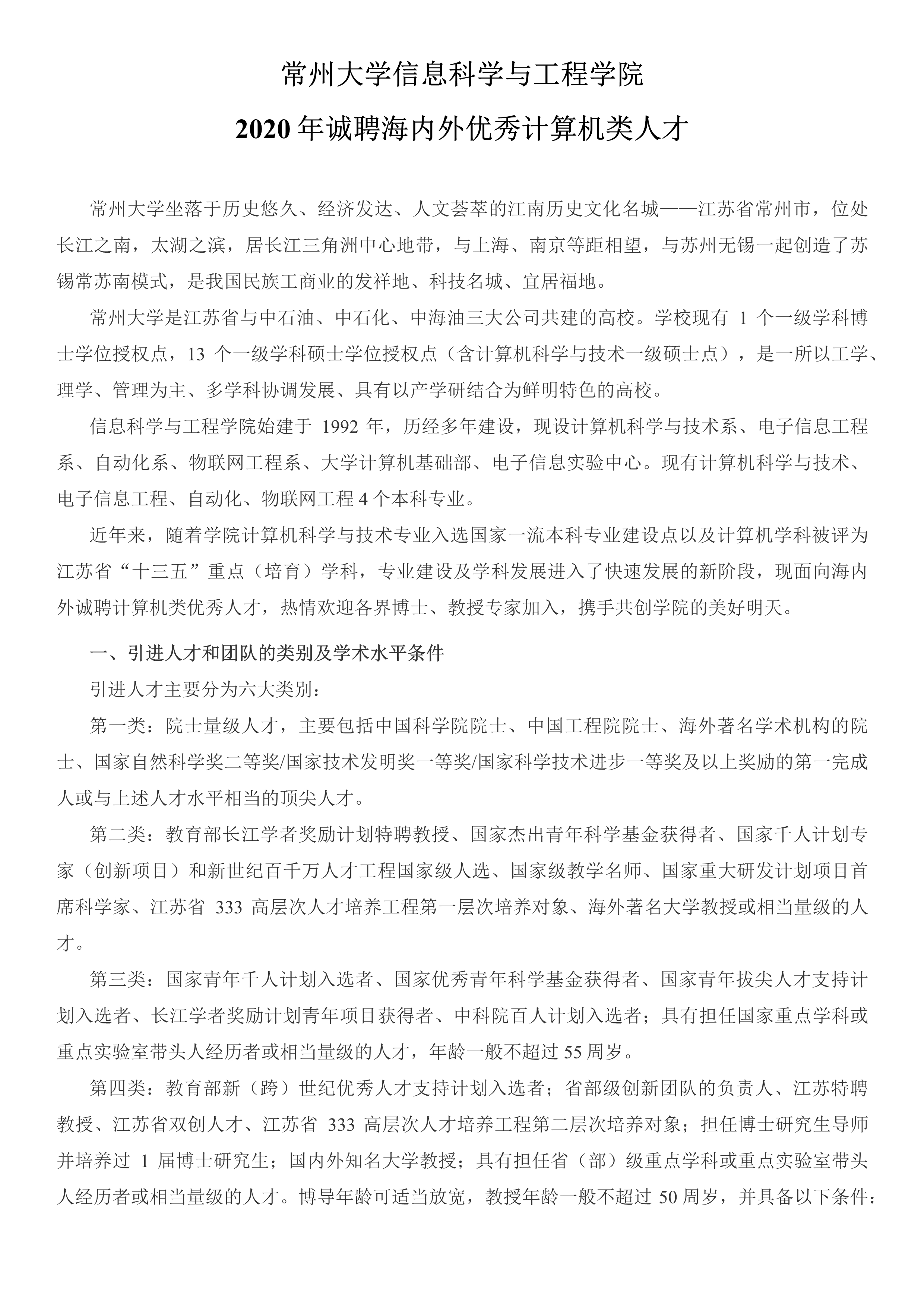 > 常州大学信息科学与工程学院2020年诚聘海内外优秀计算机类人才