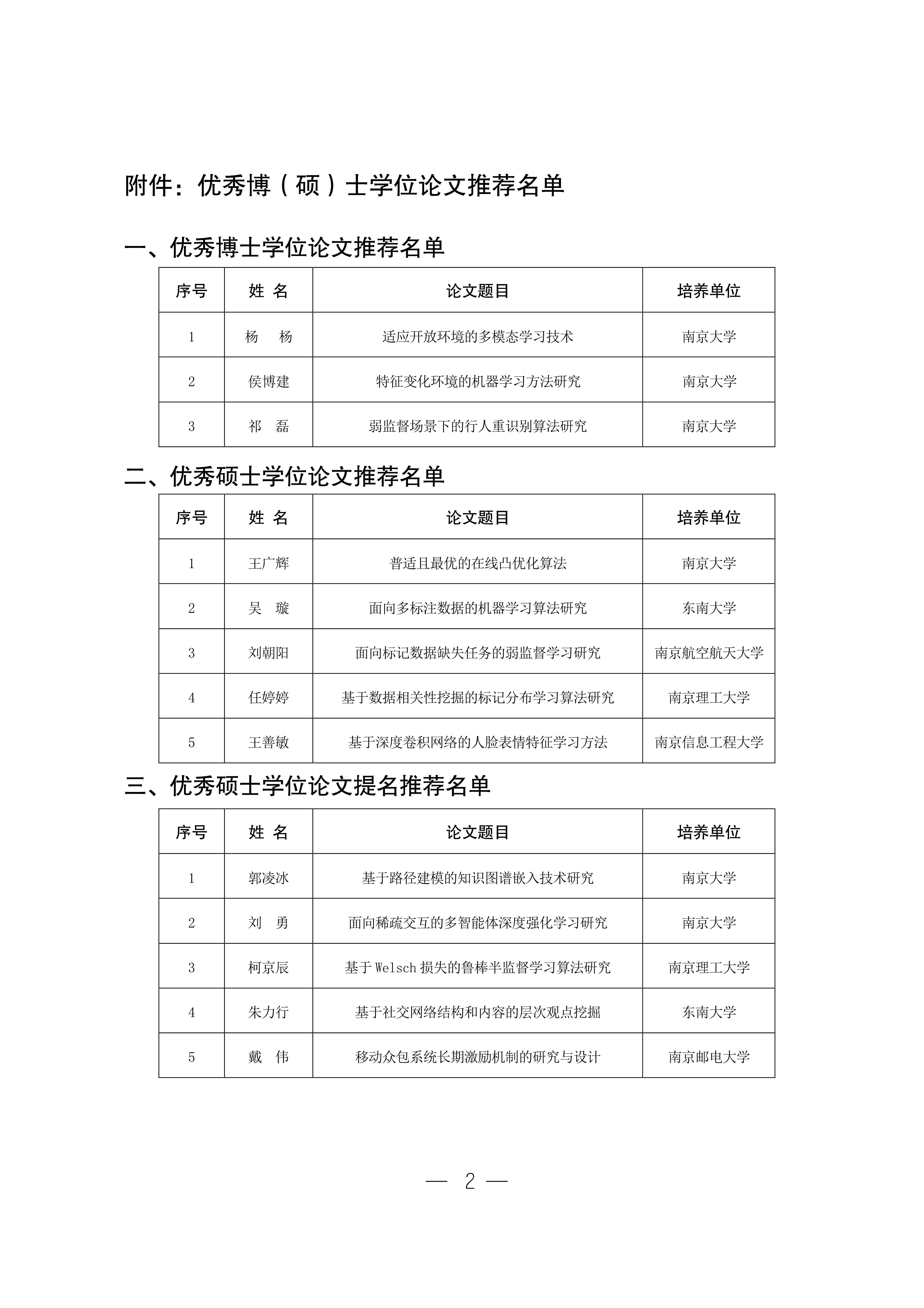 2020年度江苏省人工智能学会(JSAI)优秀博(硕)士学位论文推荐名单公示