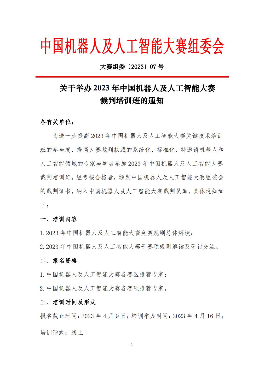 > 关于举办2023年中国机器人及人工智能大赛关键技术培训班的通知