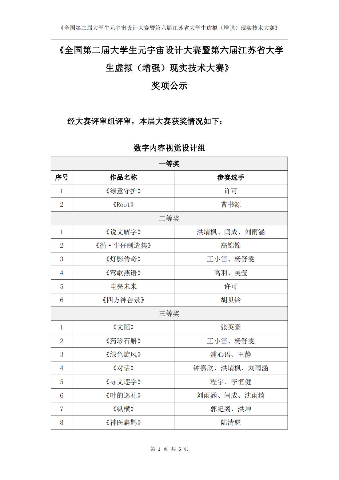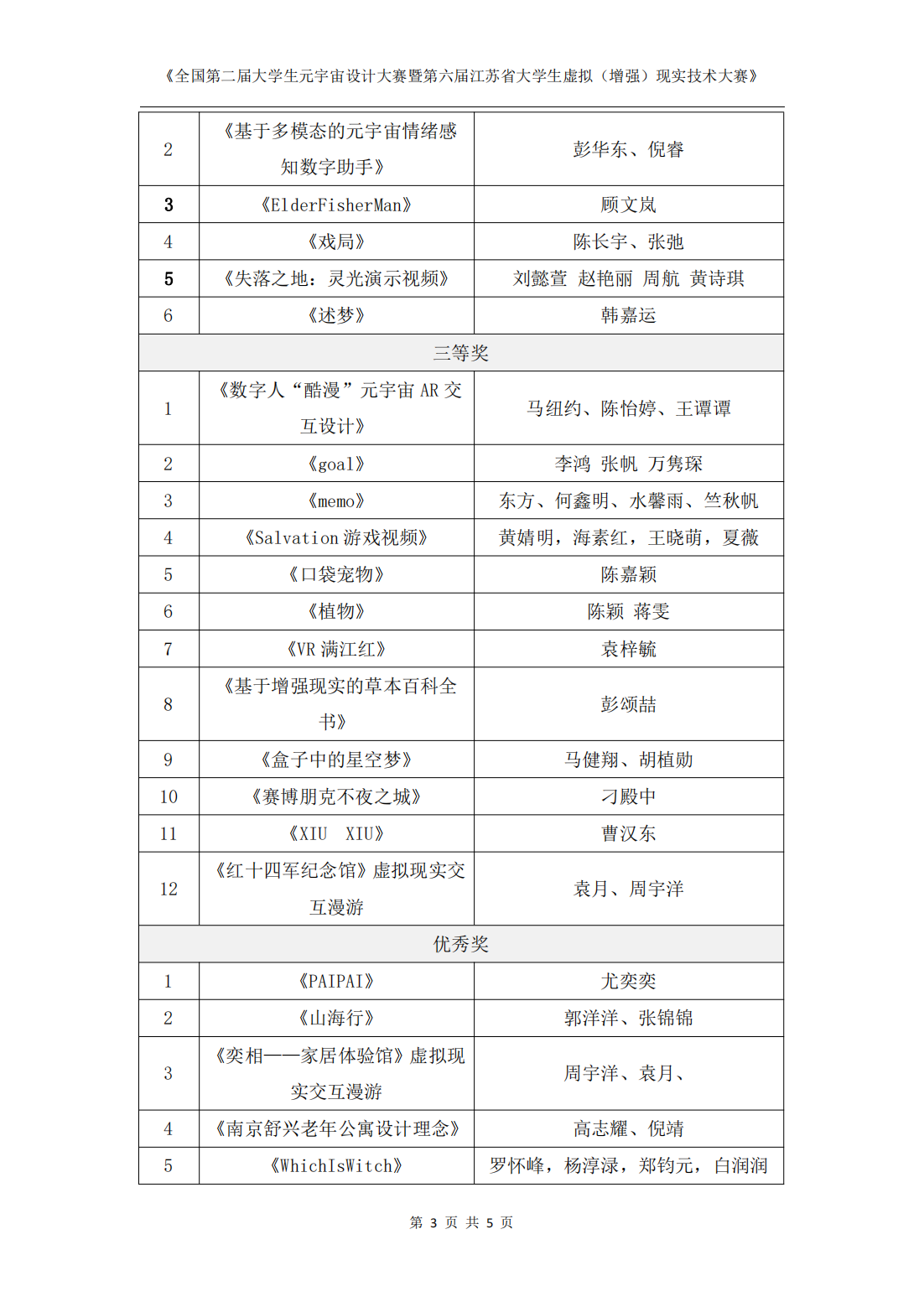 《全国第二届大学生元宇宙设计大赛暨第六届江苏省大学生虚拟(增强)现实技术大赛》奖项公示