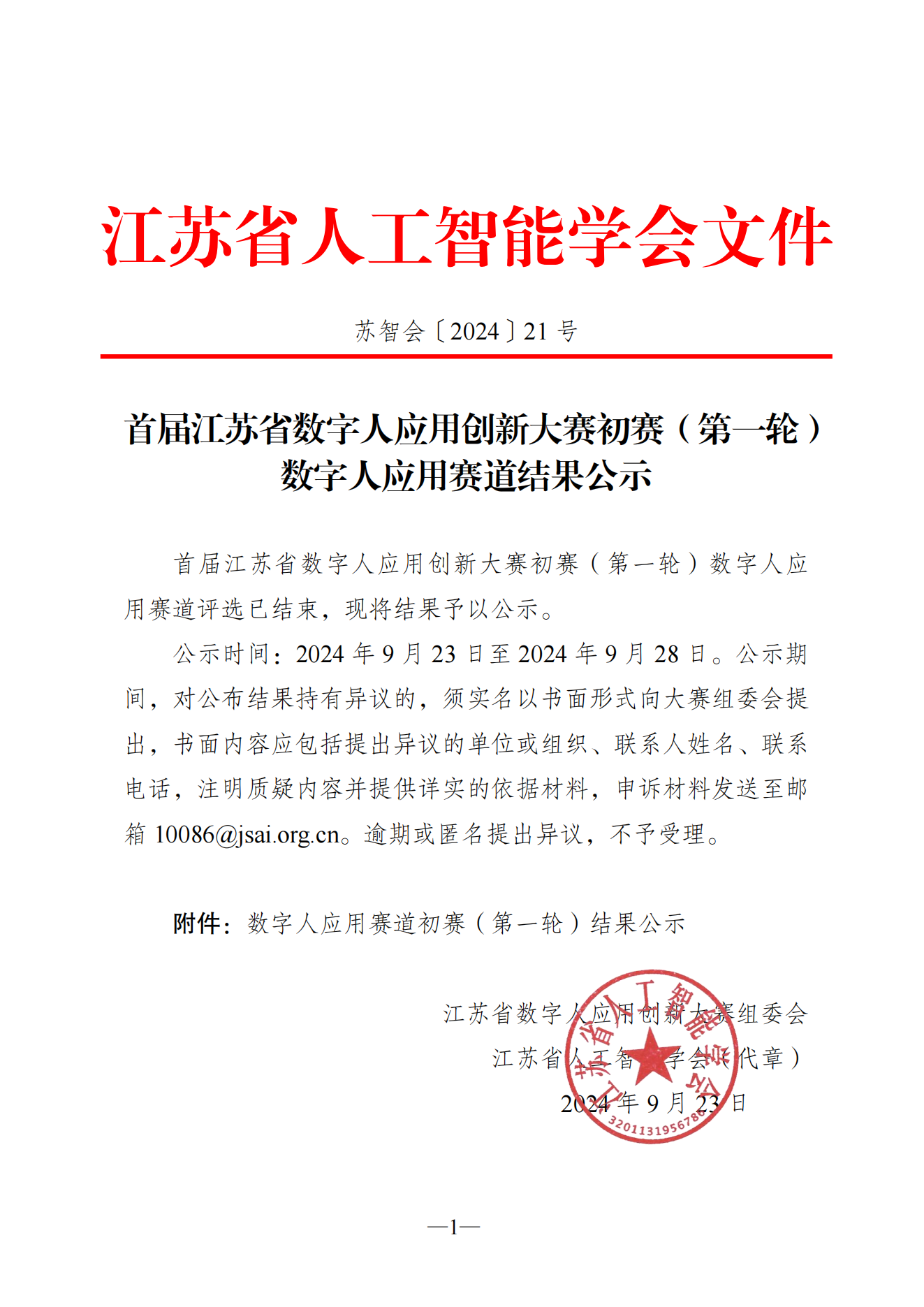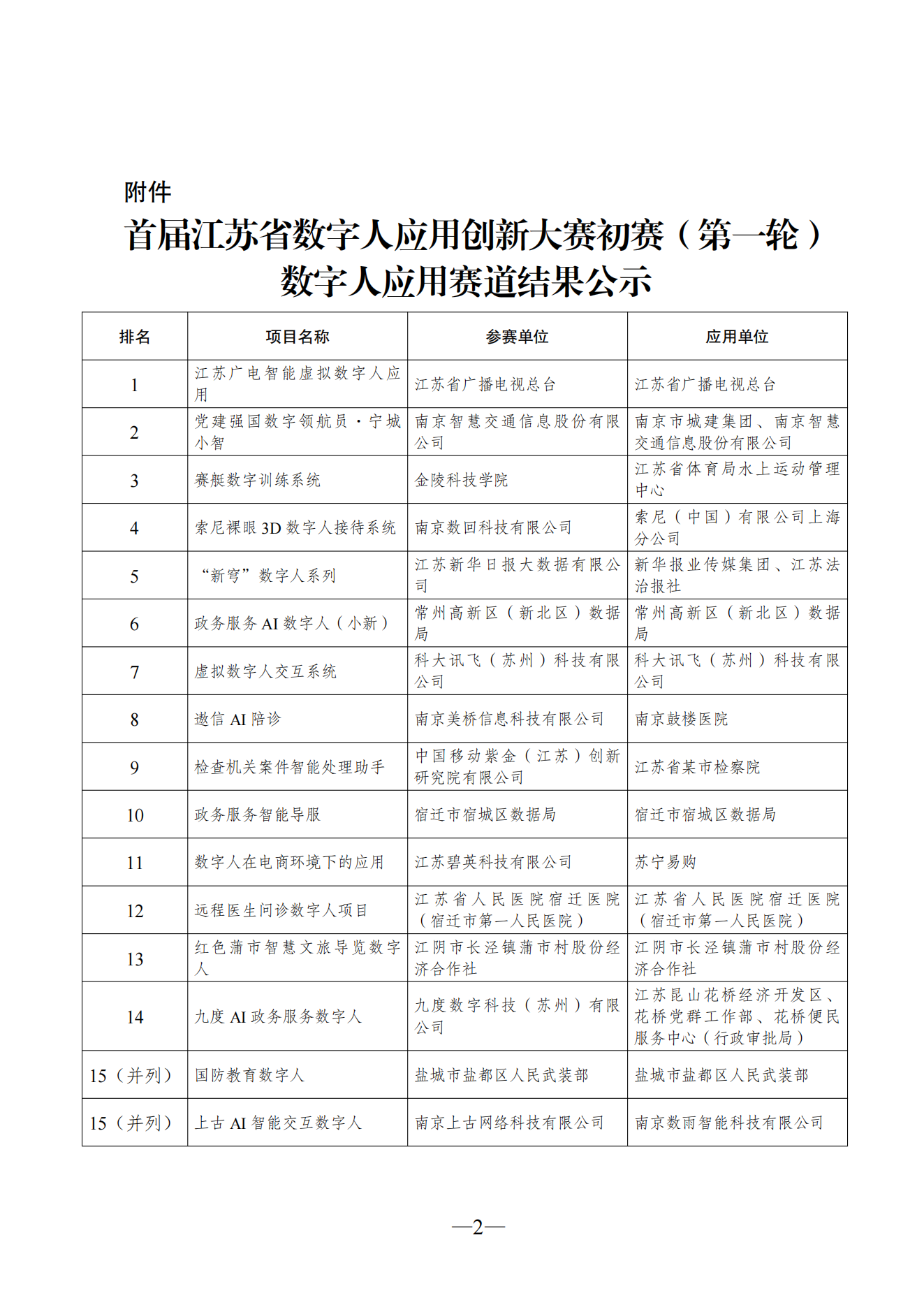 > 首届江苏省数字人应用创新大赛初赛(第一轮)数字人应用赛道结果公示