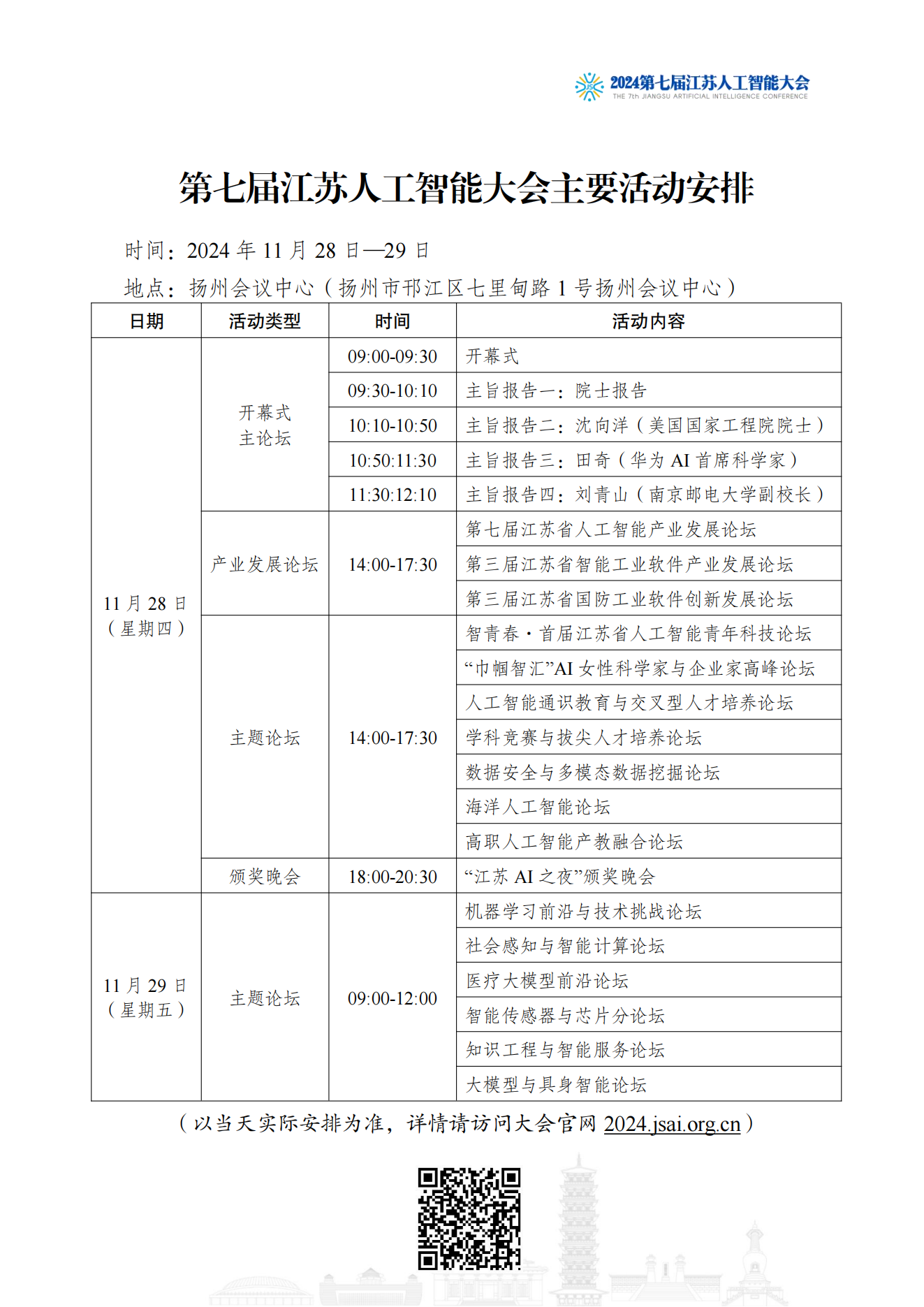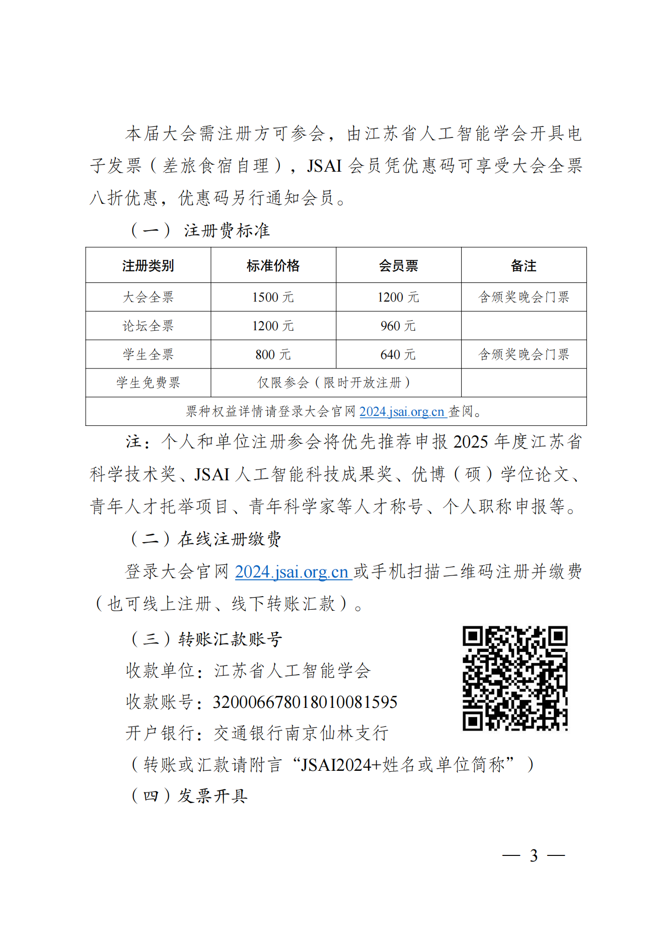 【大会·通知】关于召开JSAI2024大会的通知(苏智会〔2024〕31号)