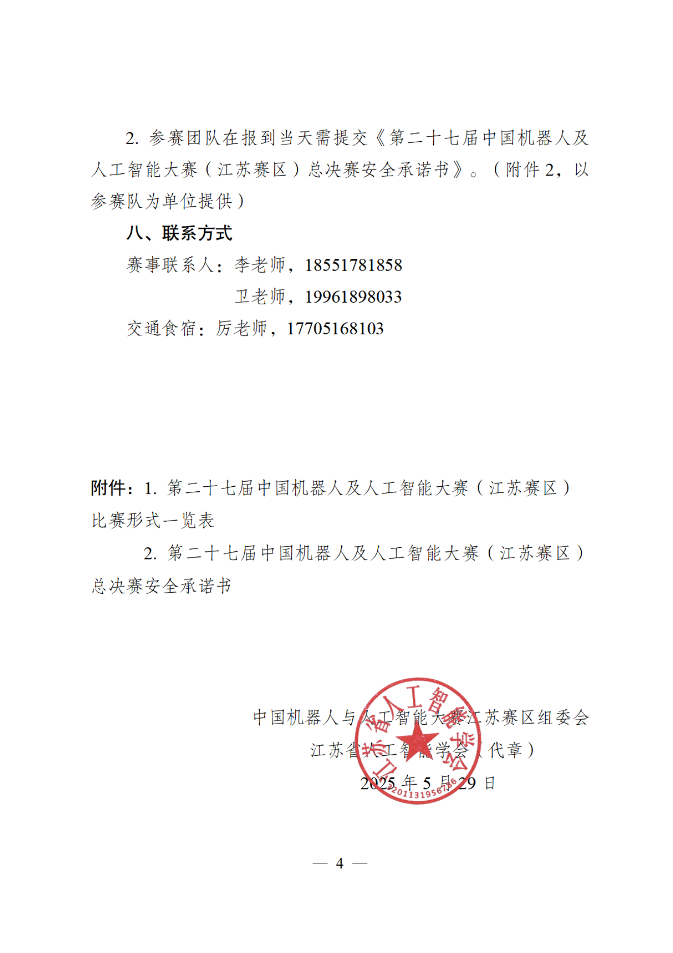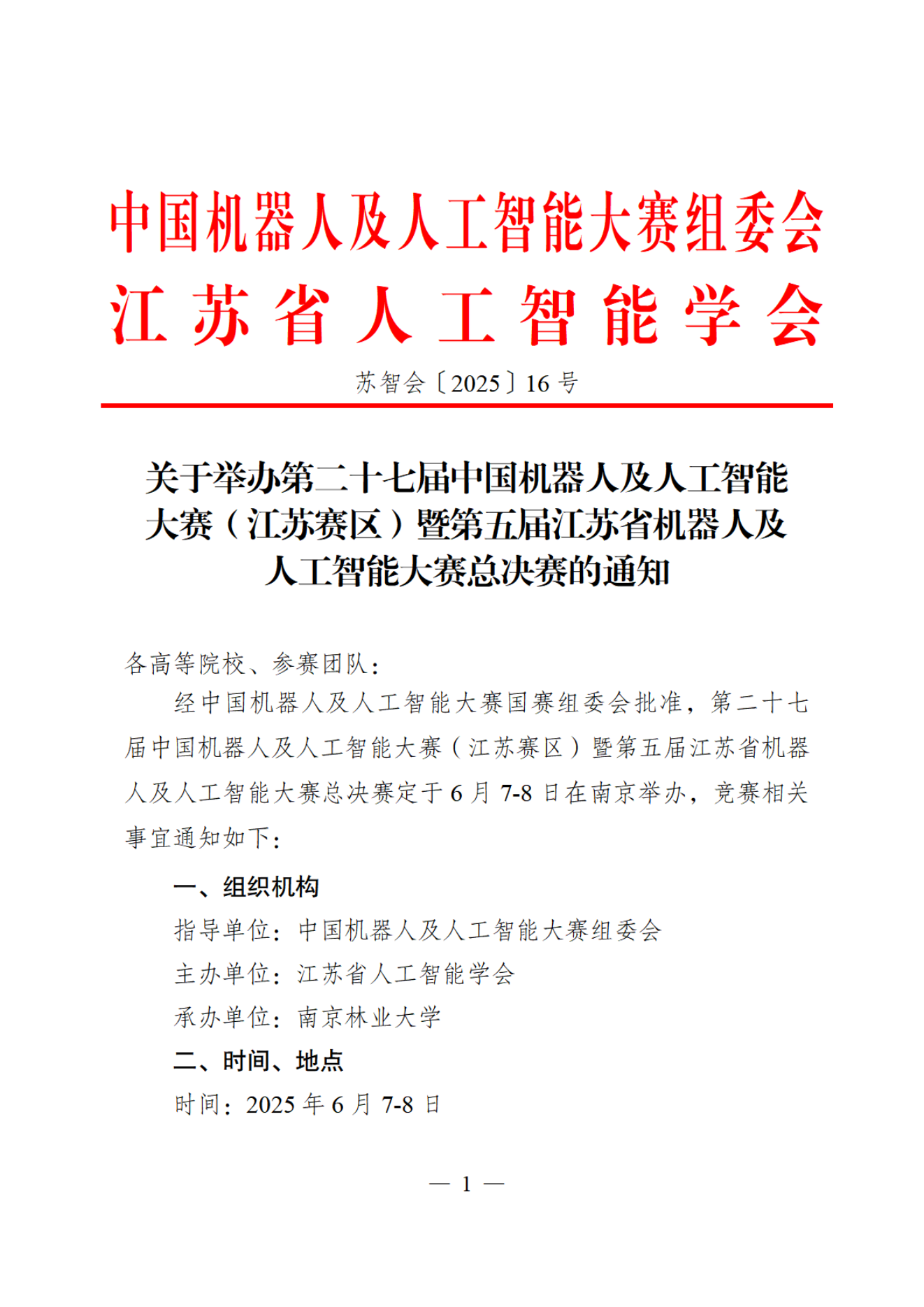 【江苏赛区比赛通知】关于举办第二十七届中国机器人及人工智能大赛(江苏赛区)暨第五届江苏省机器人及人工智能大赛总决赛比赛通知-250529