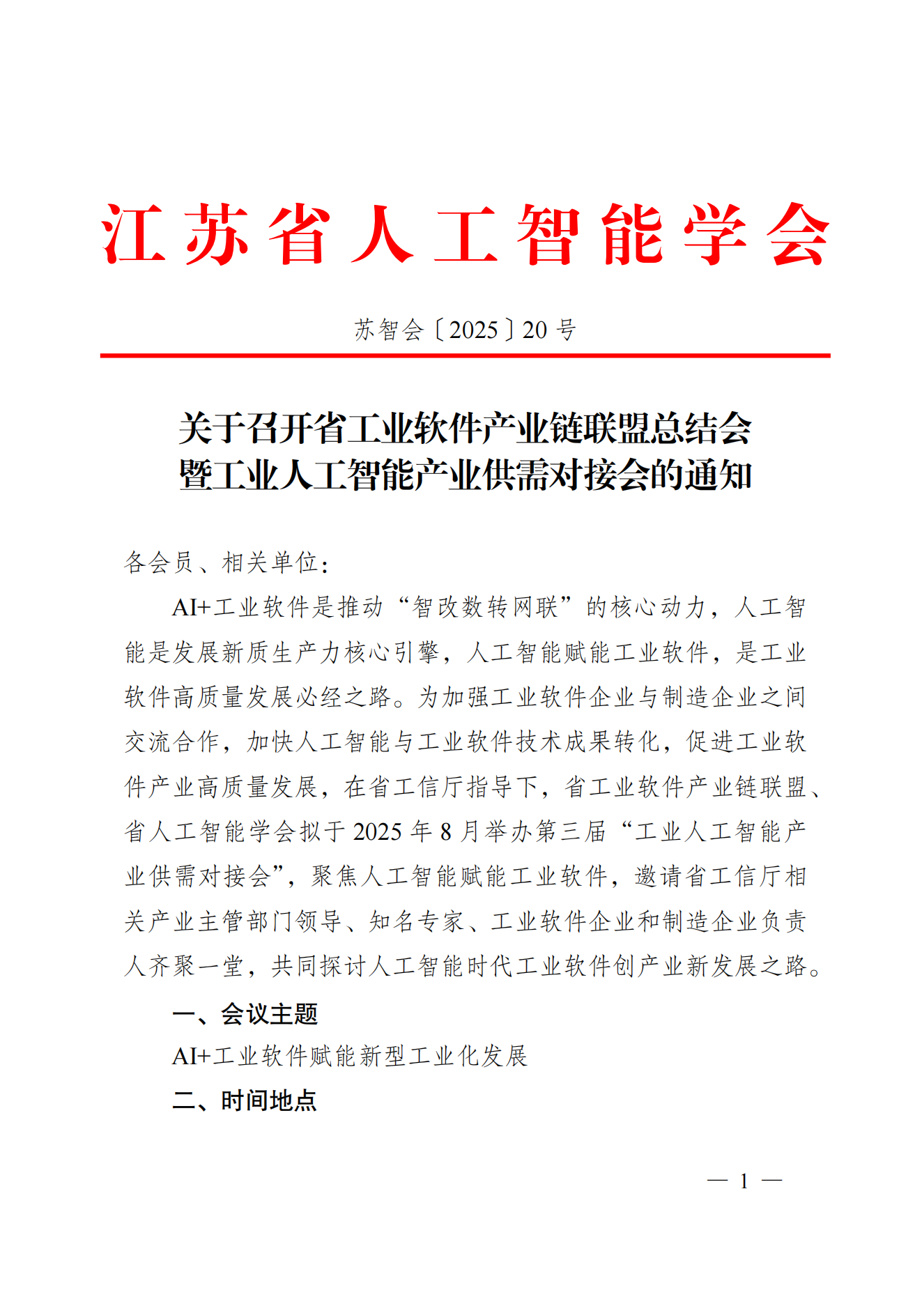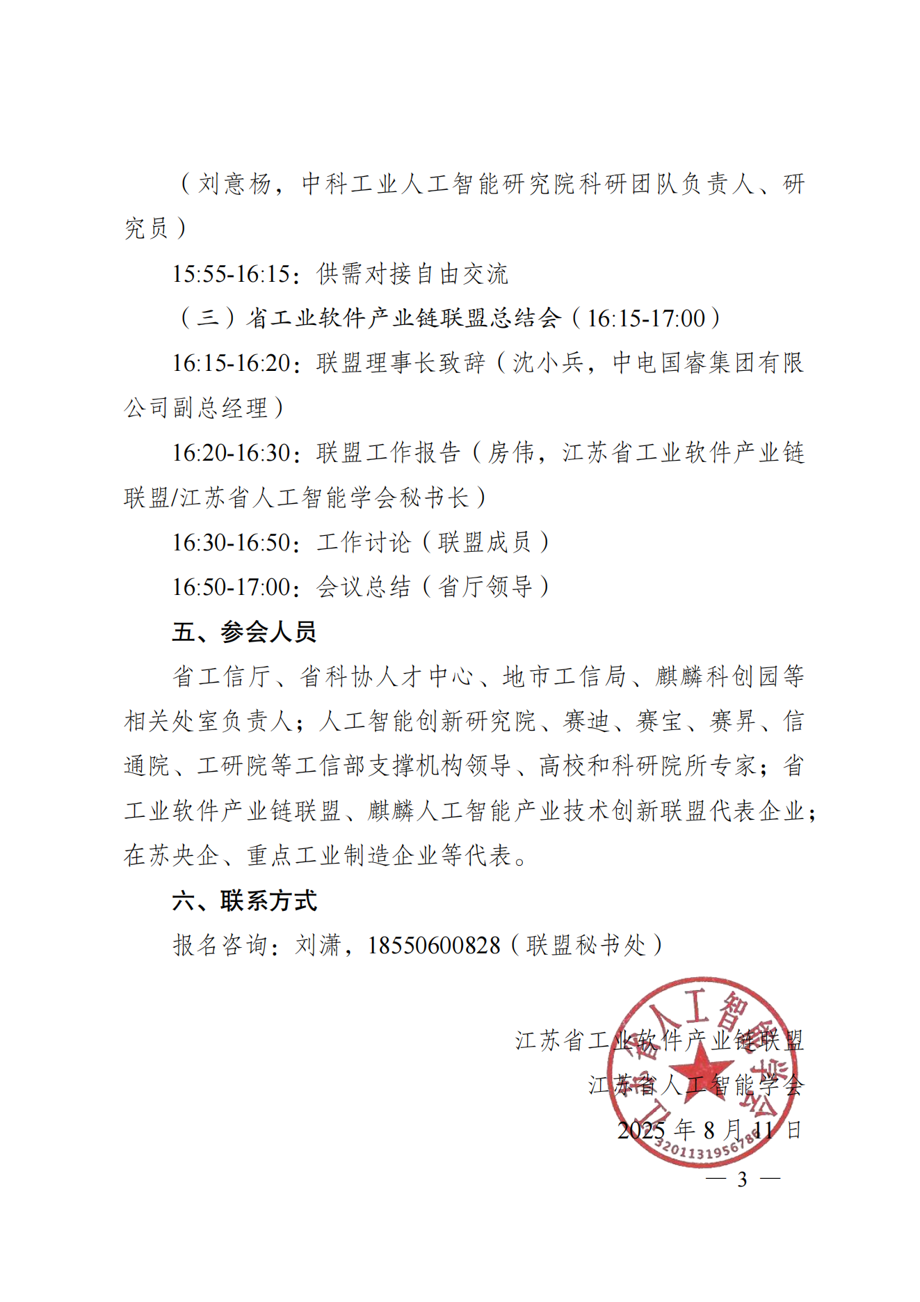 250819-关于召开省工业软件产业链联盟总结会暨工业人工智能产业供需对接会的通知