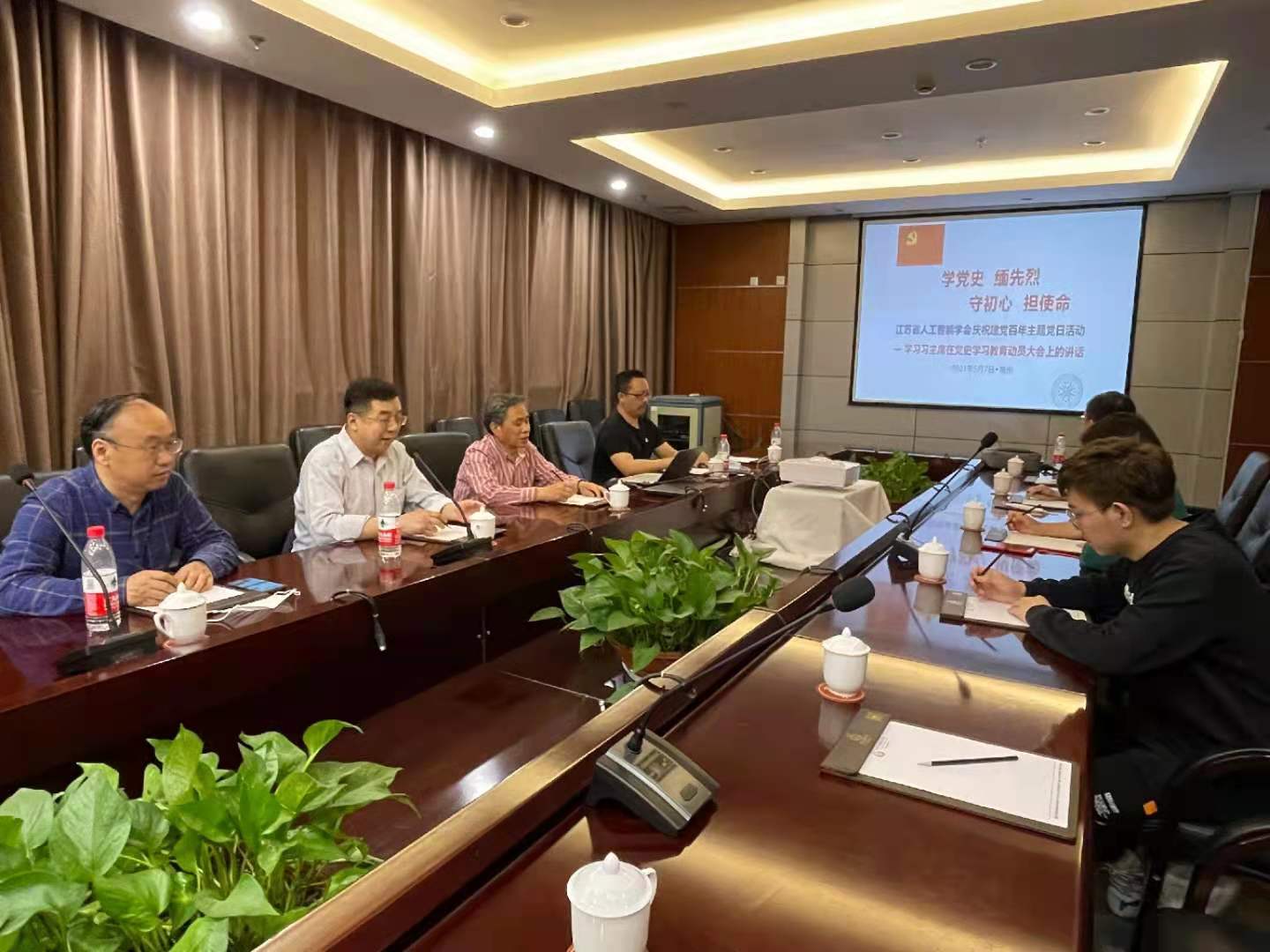 江苏省人工智能学会孙权森副理事长带领所有党员同志学习《习主席在党史学习教育动员大会上的讲话》,党员同志们要做到学史明理、学史增信、学史崇德、学史力行, 学党史、悟思想、办实事、开新局,以昂扬姿态奋力开启全面建设社会主义现代化国家新征程。会议进一步推荐党员同志们深入学习《中共简史》,并对学会秘书处党务工作、迎接建党百年工作做出了进一步部署。