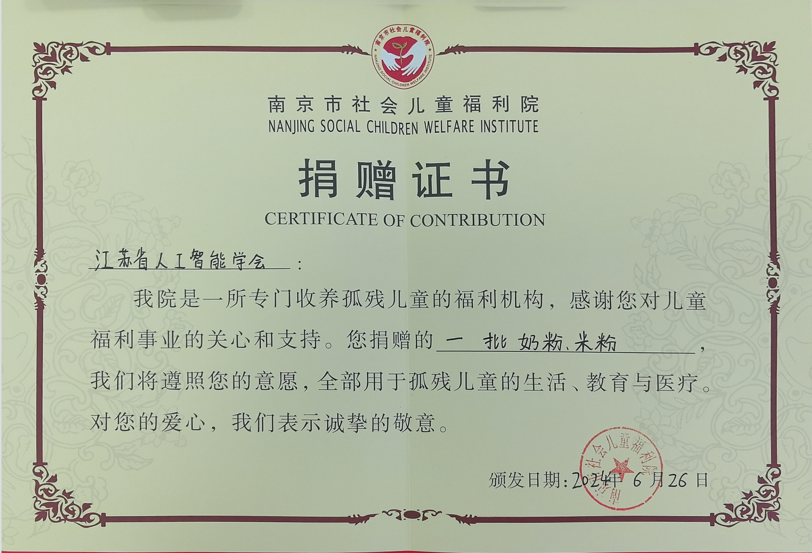 捐赠仪式结束后,南京市儿童福利院对我会党员同志的善举表示了感谢,并向学会颁发了捐赠证书。学会秘书处党员与福利院工作人员进行深入的沟通交流,耐心聆听了孩子们的生活和学习情况。党员们被“小天使”们坚强乐观的精神所打动,纷纷表示将继续关注和支持儿童福利事业,为福利院的孩子们提供更多持续、有效的帮助,为孩子们的成长贡献自己的一份力量。