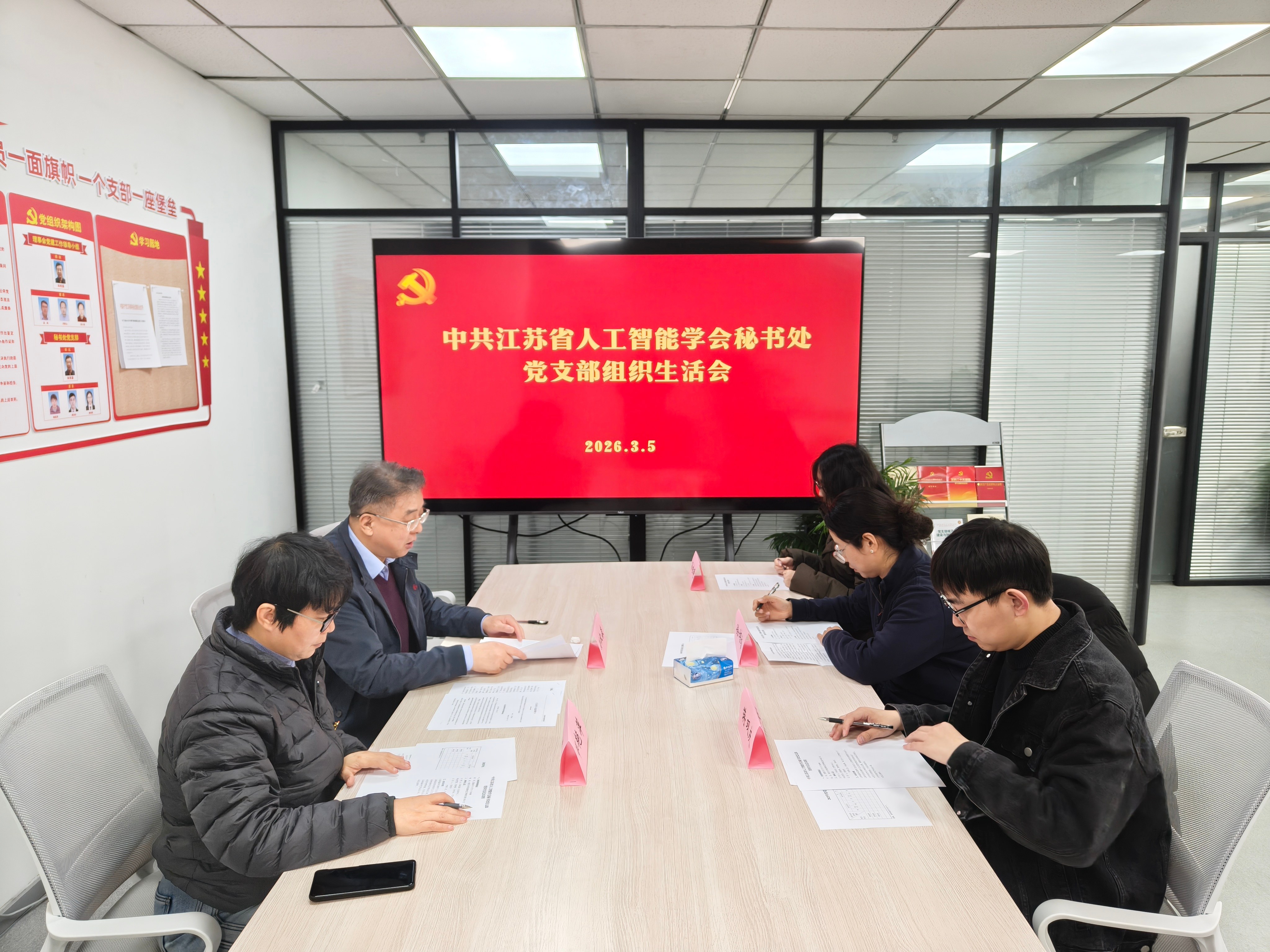 3月5日,中共江苏省人工智能学会秘书处党支部召开2025年度组织生活会。学会秘书处党支部全体党员参加会议,入党积极分子列席。会议由学会秘书处党支部书记孙权森主持。